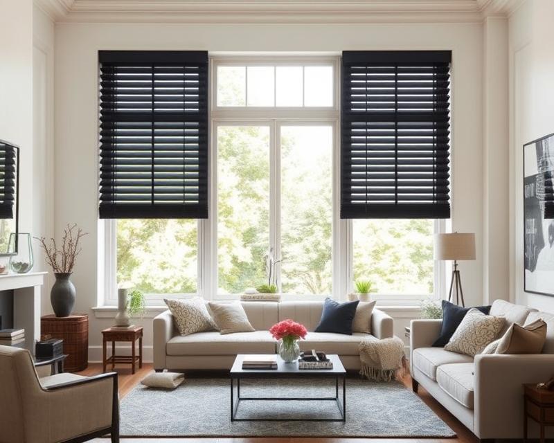 Wybierz czarne drewniane żaluzje, aby dodać elegancji i funkcjonalności do swojego wnętrza.