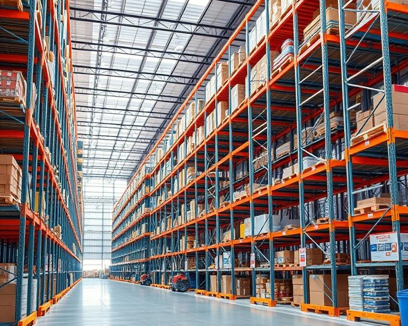 - Regały wysokiego składowania – skutecznie wykorzystują przestrzeń, pozwalając na przechowywanie towarów na znacznych wysokościach, co jest kluczowe w centrach logistycznych,